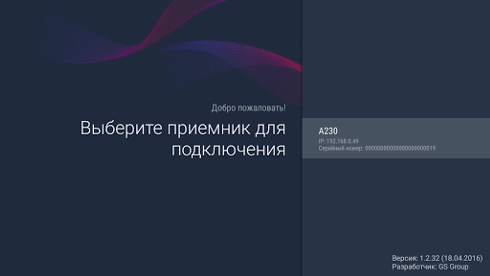 3. Run the application - connection to the receiver automatically. If the network settings on the router does not allow us to find the receiver automatically, you can connect the receiver for IP-address.