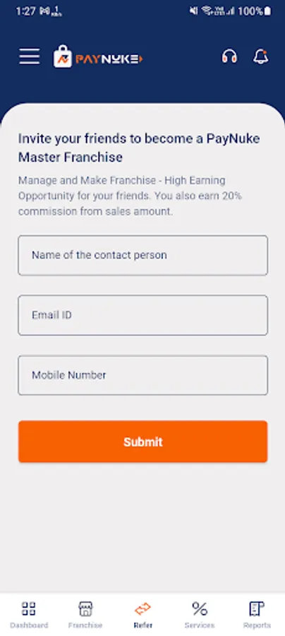 The main idea behind the PayNuke MF01 application is to provide an online platform to the users. User doesn’t need to have a shop to start a business. User only needs to have a Smartphone and he can start a business in less than 30 minutes. No training is required to run the business. No client interaction is there. No Customer handling. No Call handling. No Order Management handling. No Documentation handling. No headache. Everything is handled by our experts. User only needs to login to this Mobile Application and start working.