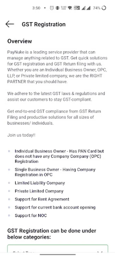 Paynuke is an app based service that helps Entrepreneurs and small business owners start and grow their business - while remaining compliant under various Indian Government departments.