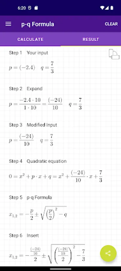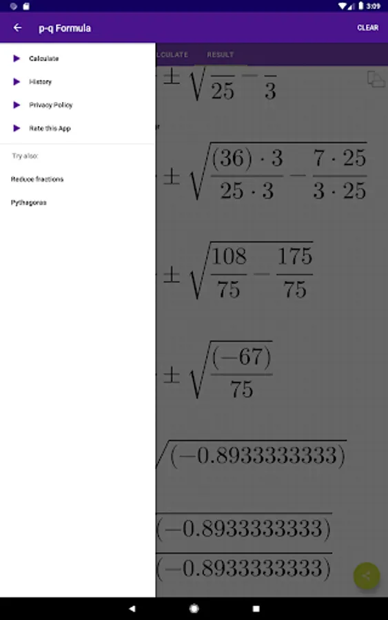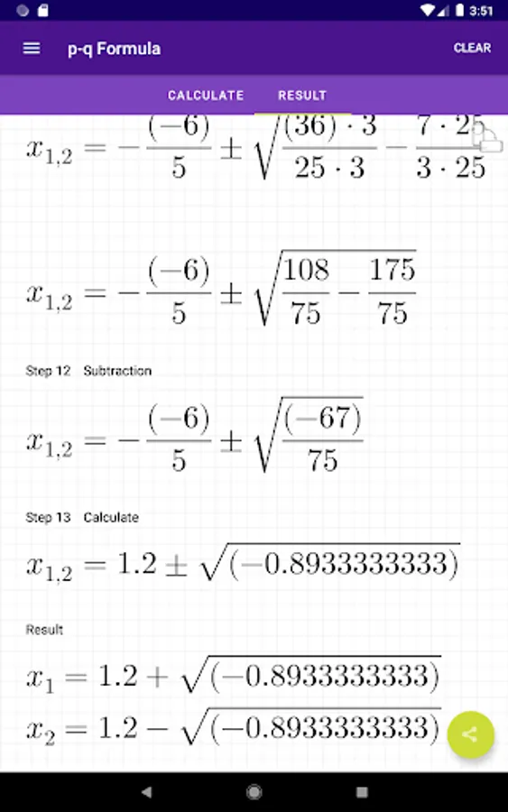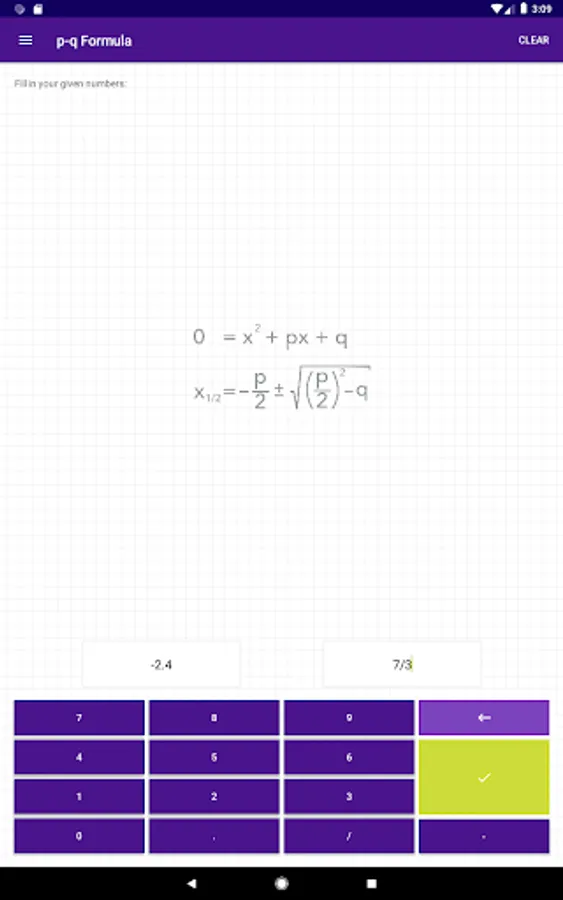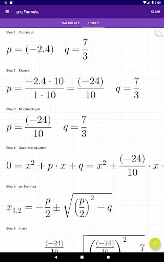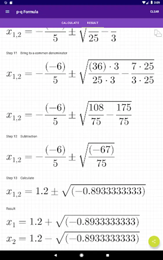 This app uses the pq formula for finding the zeros of a function quickly and easily. For this, only the values for pq must be entered. All calculations are stored in the history. The final solution can be shared.