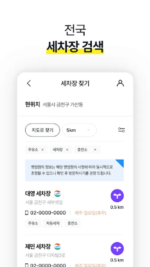 - Find a car wash: Provides information about car washes near your current location.