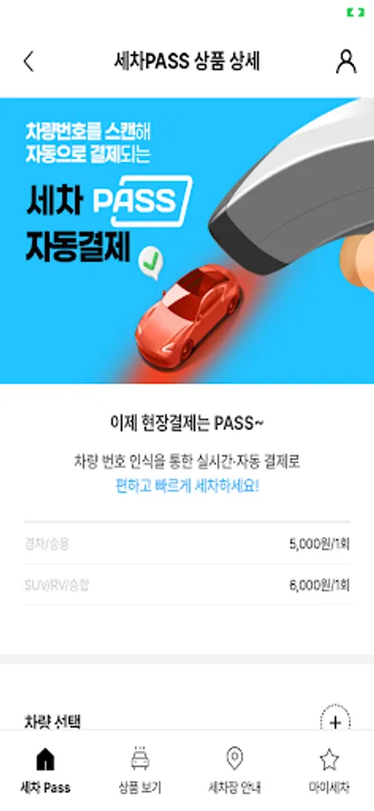 -Automatic car wash PASS payment: Register your vehicle and payment information and wash your car without on-site payment.