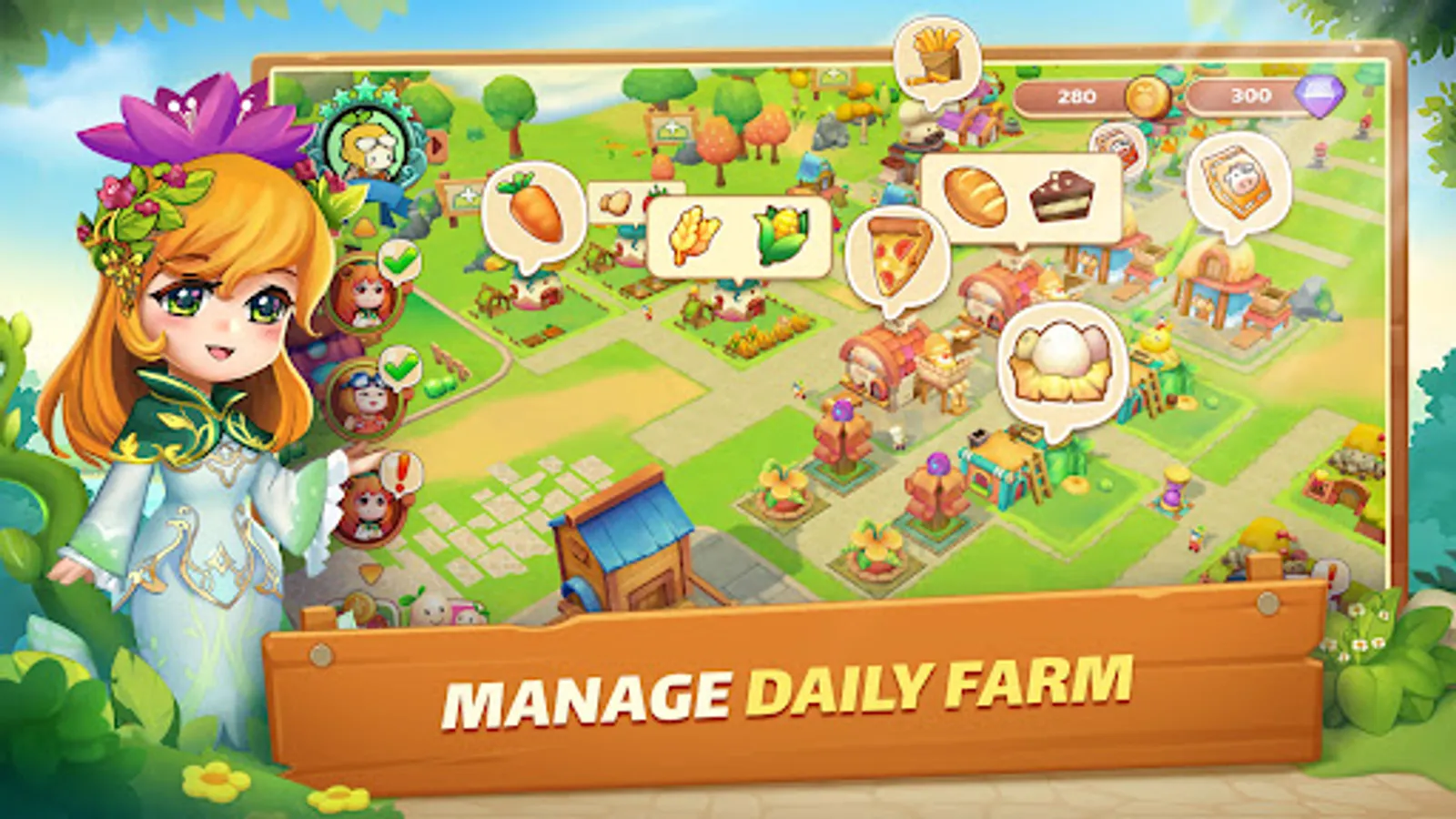 With a lot of familiar crops and animals such as corn, wheat, chickens, dairy cows, etc, you will lead your citizens to raise, cultivate, produce and harvest different products, fulfill orders to meet all the needs of the people on the island. To complete this big mission, you also need to expand the land, build and upgrade buildings such as Bread ovens, Breweries, Dairy factories, etc