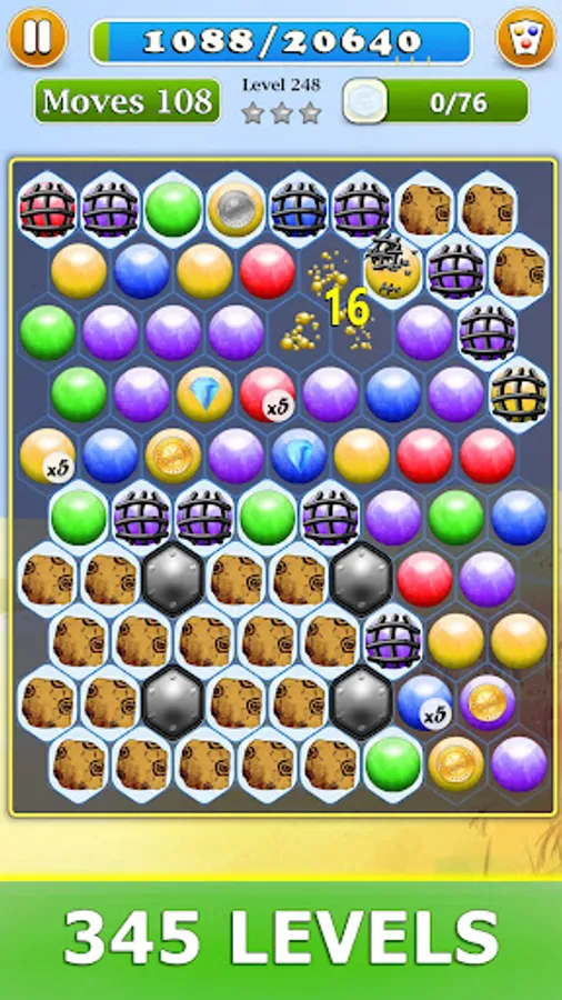 - Quest with 345 levels filled with special bubbles, multipliers, prizes and power-ups.
