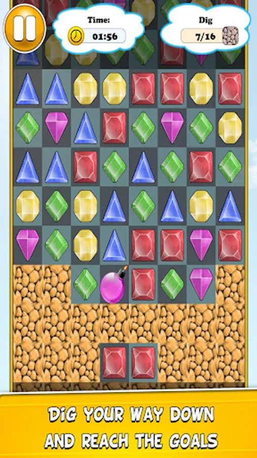 - 5 game objectives: achieve the target score, break all diamond and crystal cells, treasure hunting in which you have to dig you way down to the goal line, clear all the ice and pearl hunting