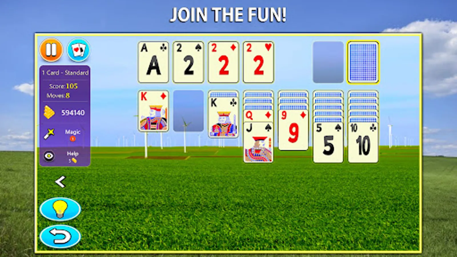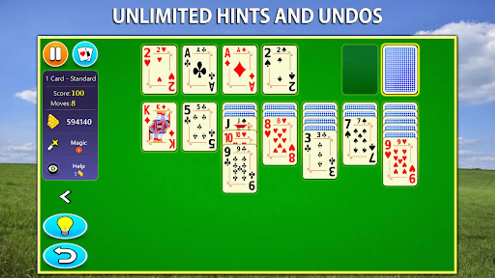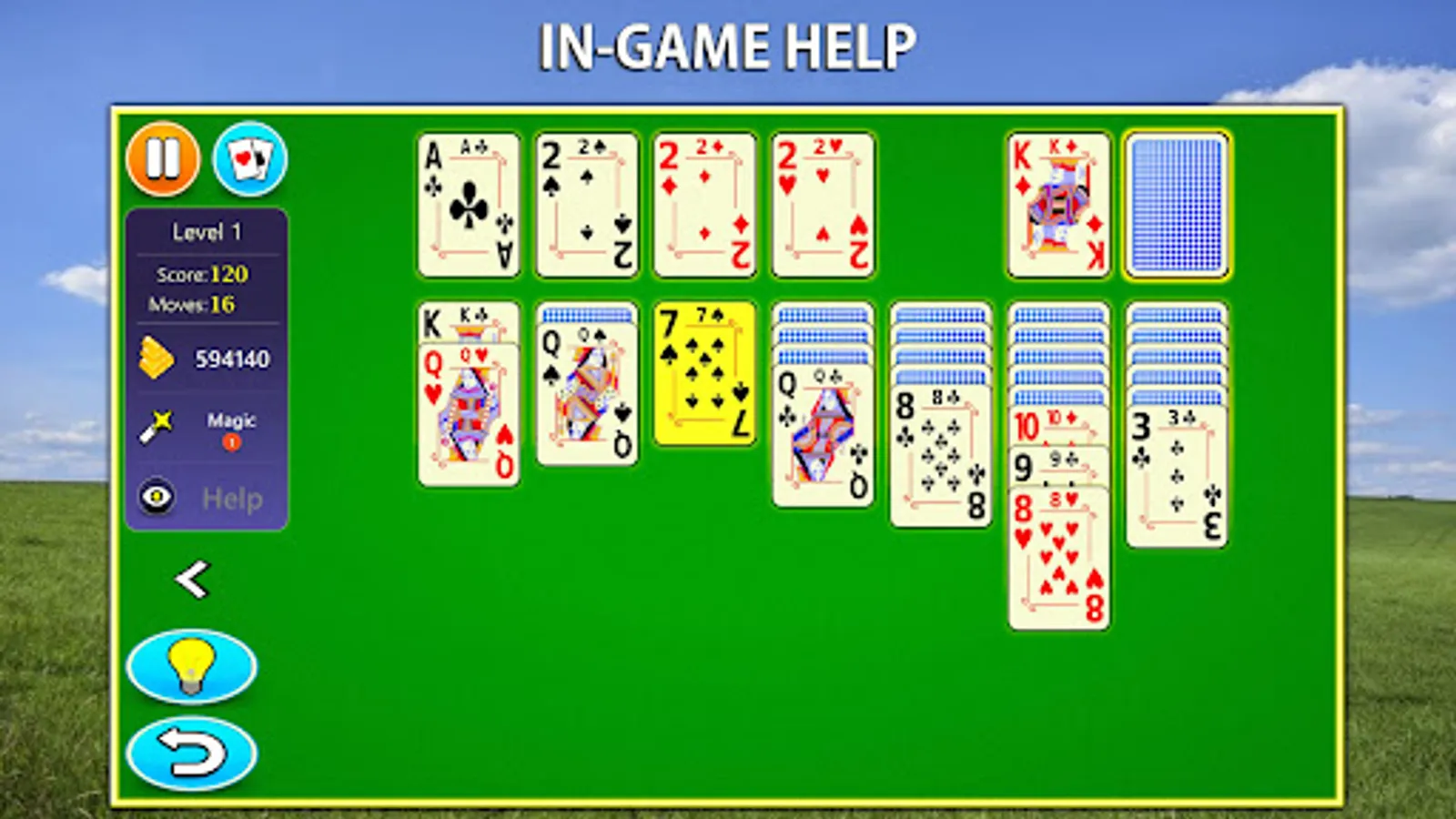 We also give you the most helpful hints and a new visual help system. If you are new to Solitaire games, our help system will help you get started by showing you what moves you can play.