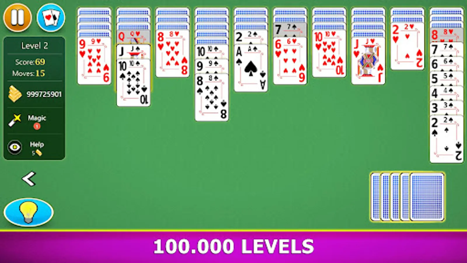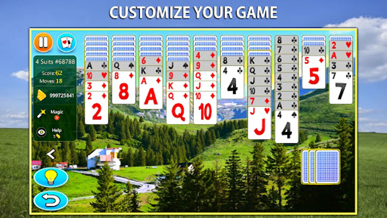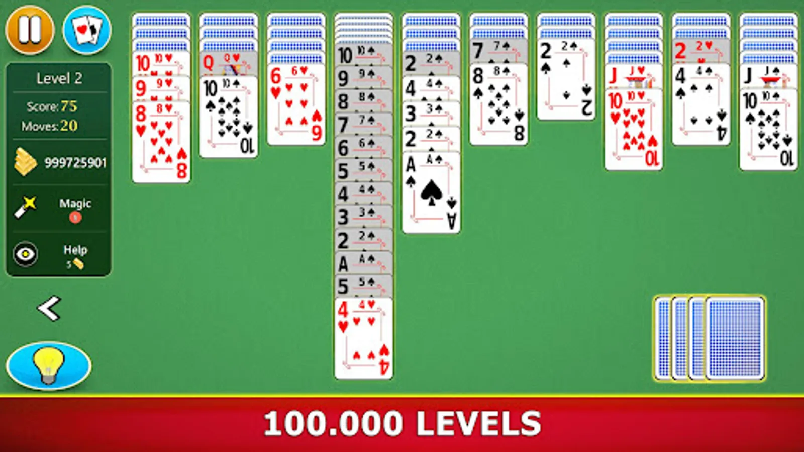 - Level Mode with 100,000 levels of 1 suit, 2 suits and 4 suits deals