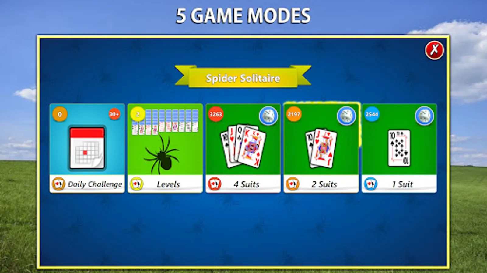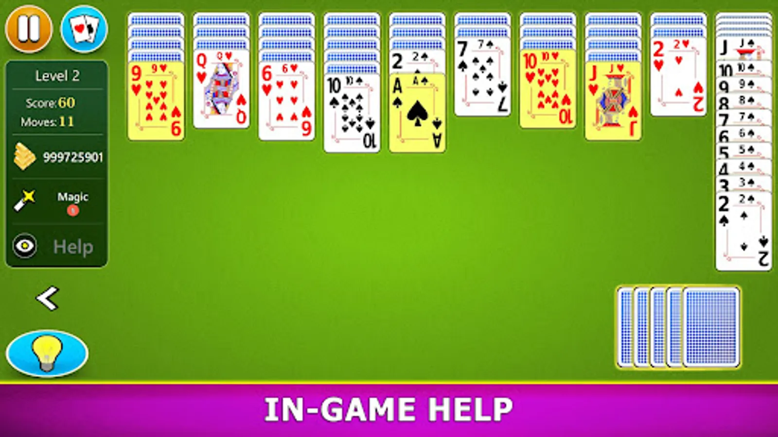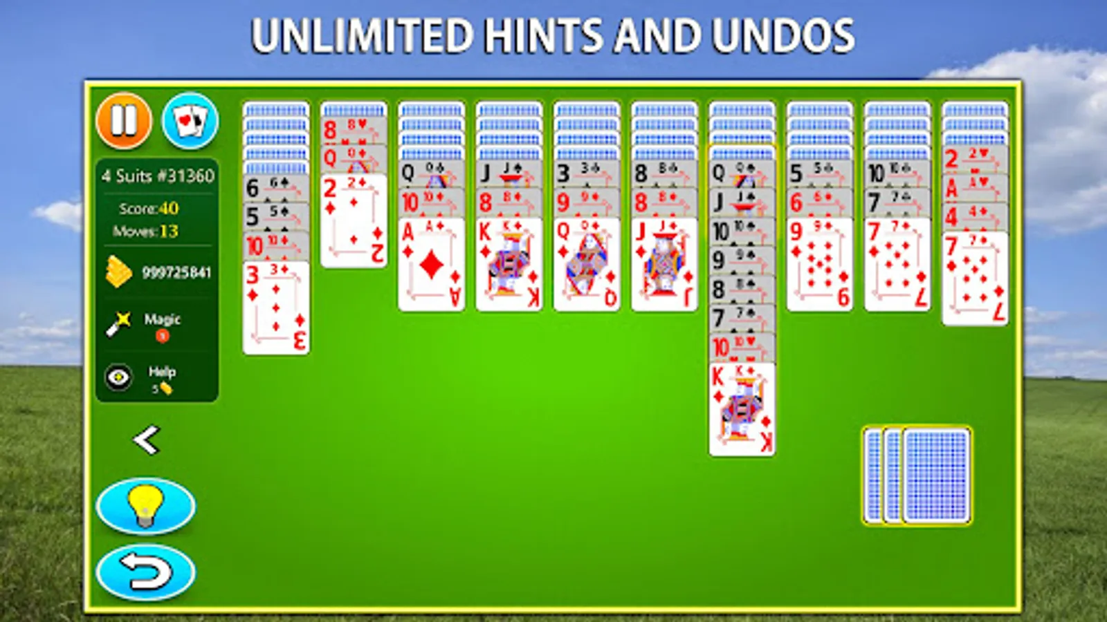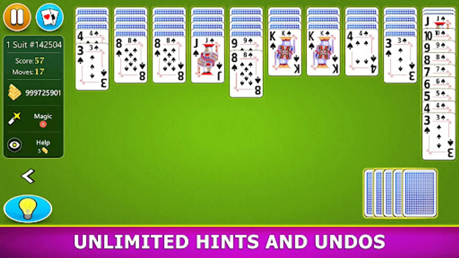 - Level Mode with 100,000 levels of 1 suit, 2 suits and 4 suits deals