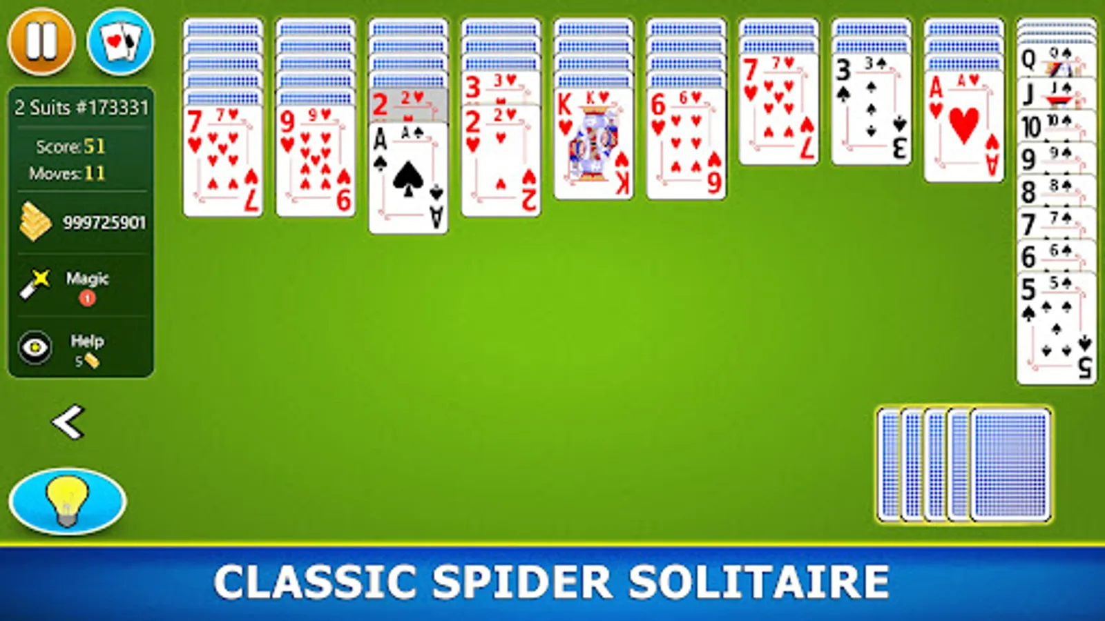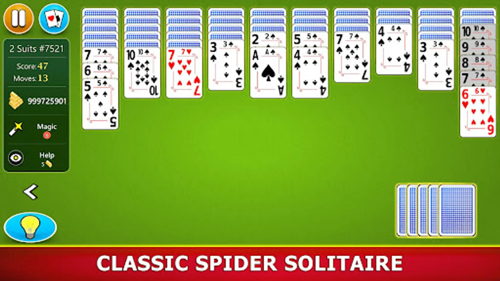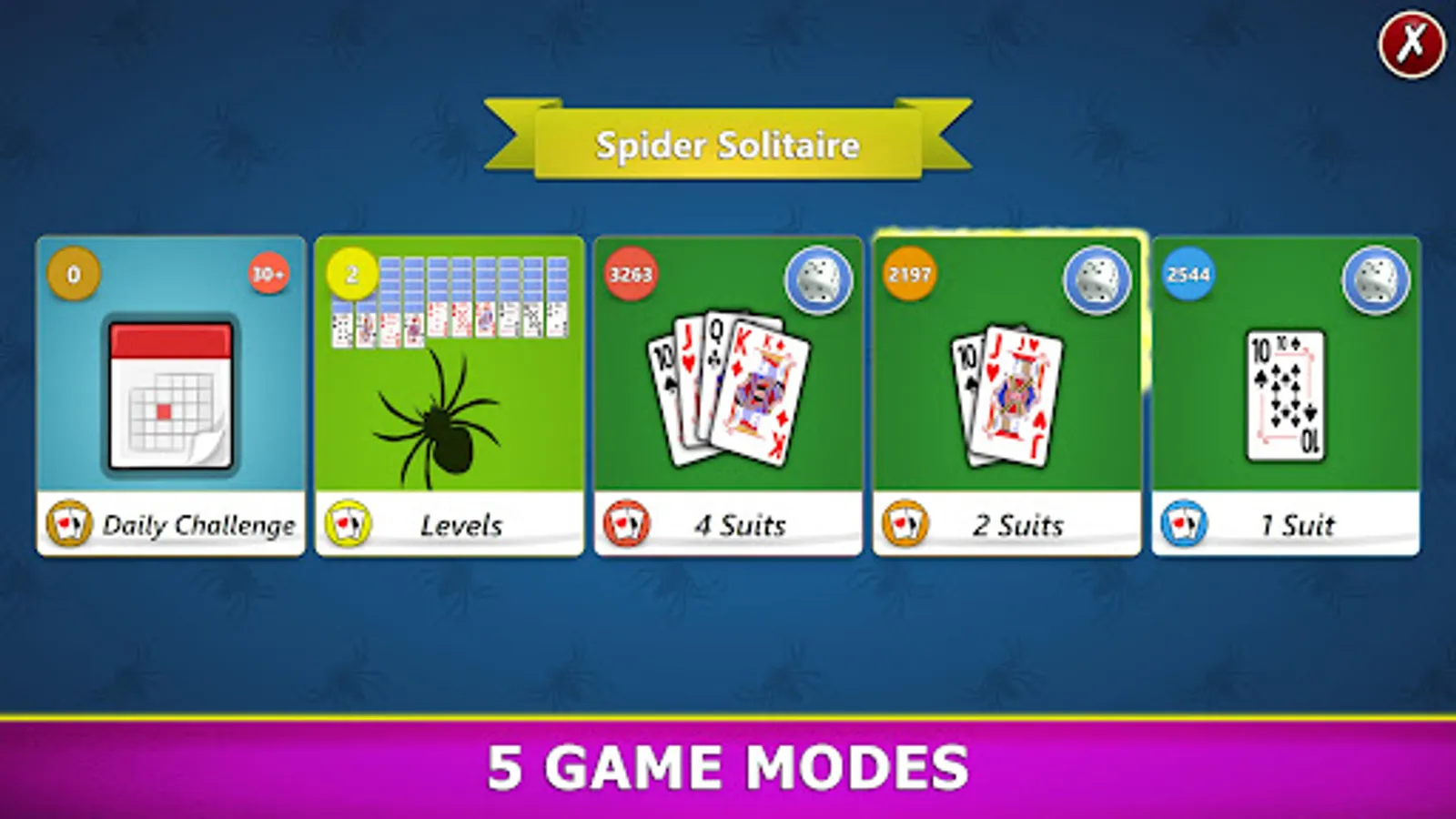 Spider Solitaire games that you can win deliver the best experience. As you may know, most Spider Solitaire games are not winnable even though you play your best. That's where we come in. We included in this game only winnable deals for all types of games: with one suit, with 2 suits and 4 suits. Thus you can be sure that you will win if you play perfectly. Now you can truly enjoy the game.