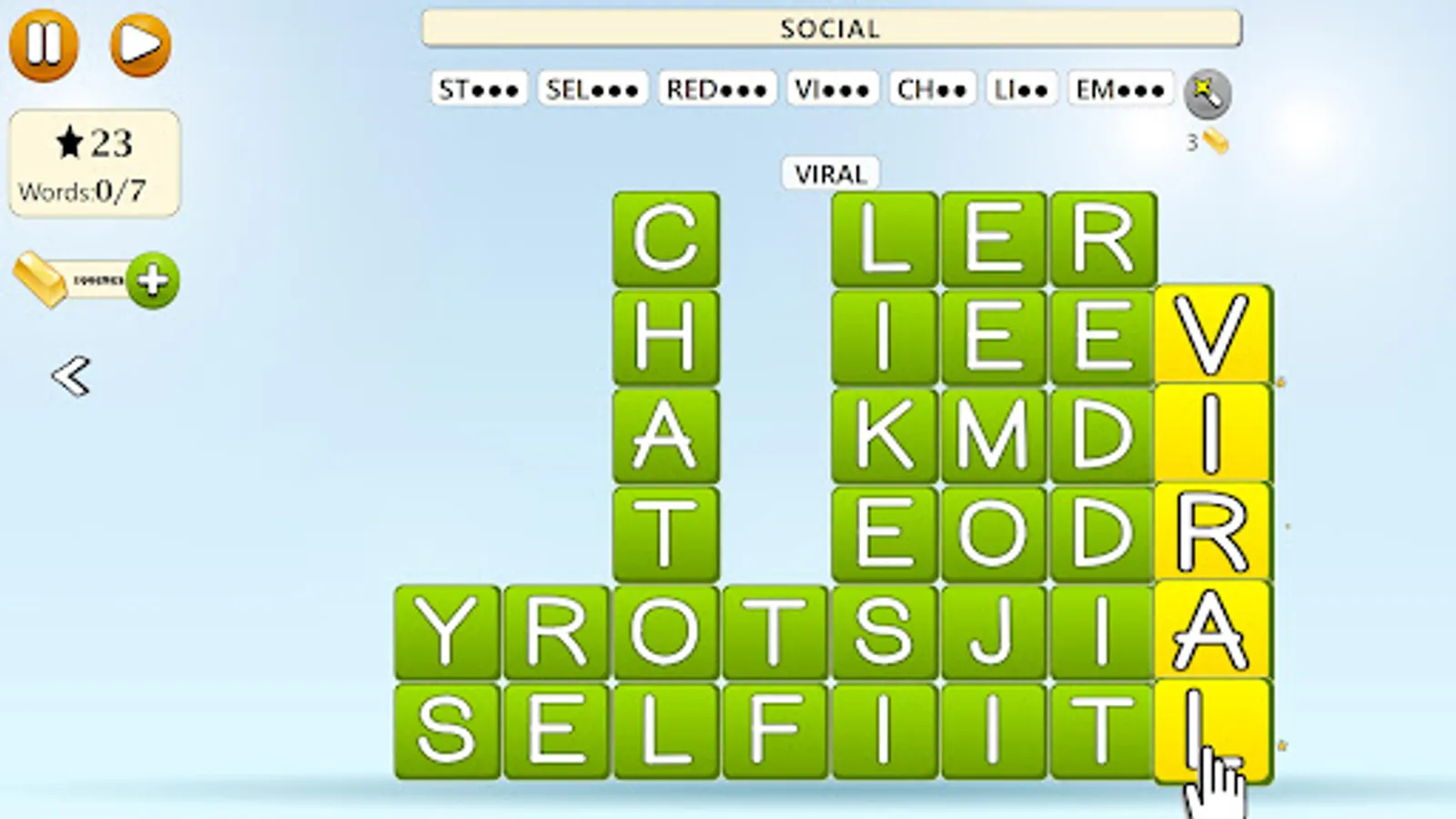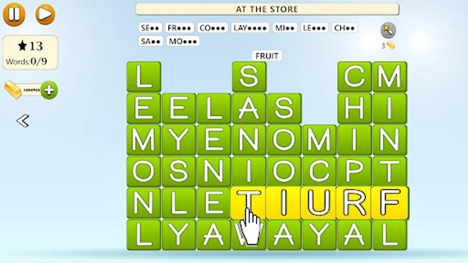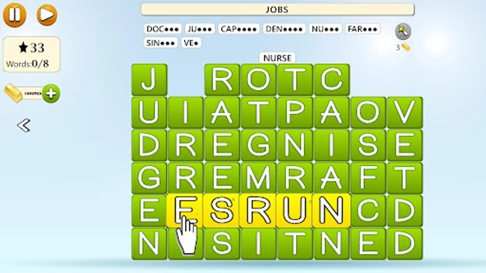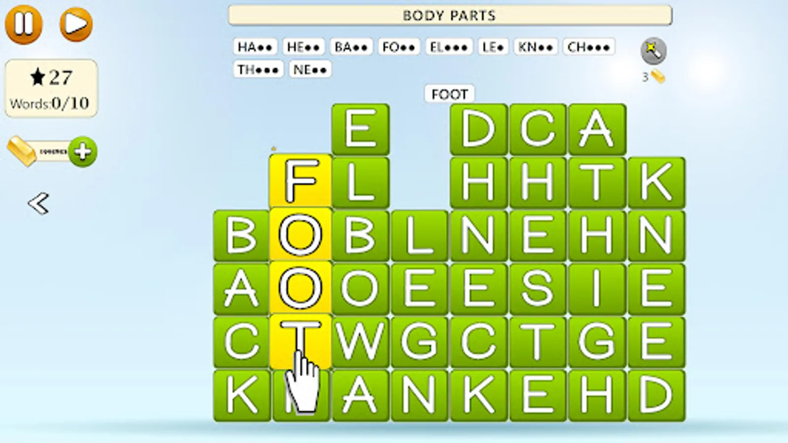 You find words and pop them with one swipe. Words are placed either vertically or horizontally. Finding words is easy when you use the hint and starting letters. When you pop all the letters you win the game. The game gets easier as you find more and more words.