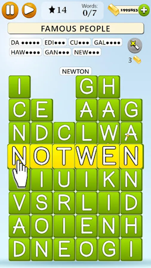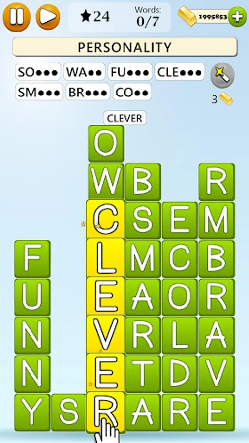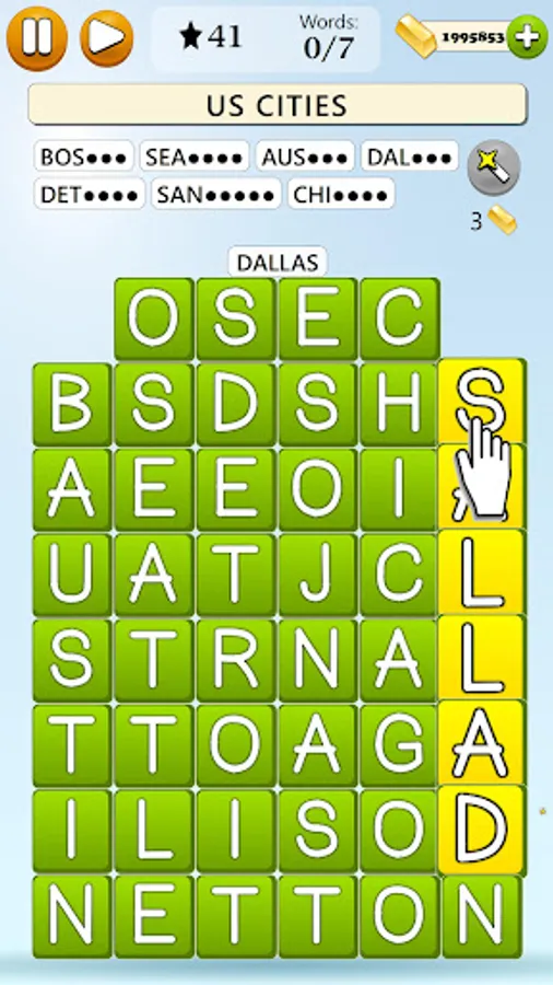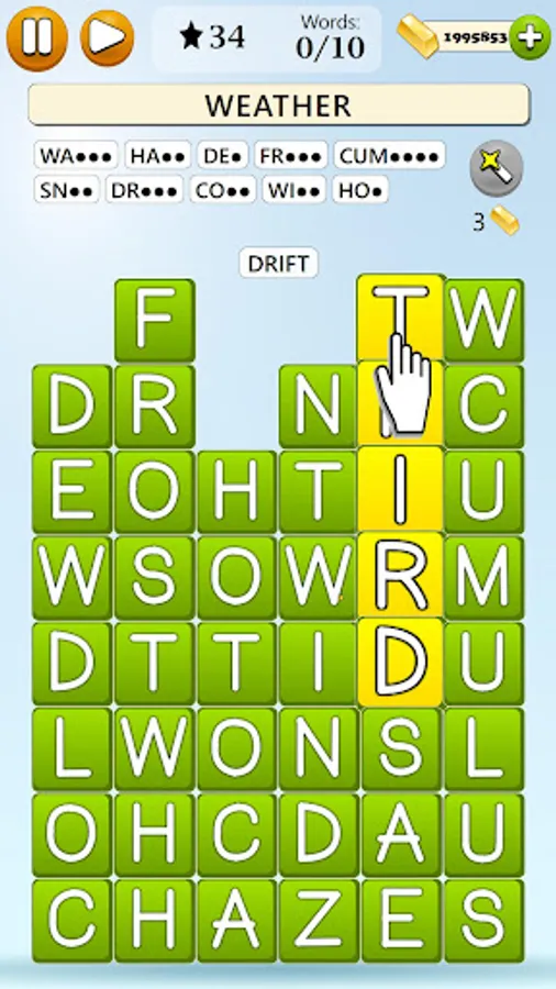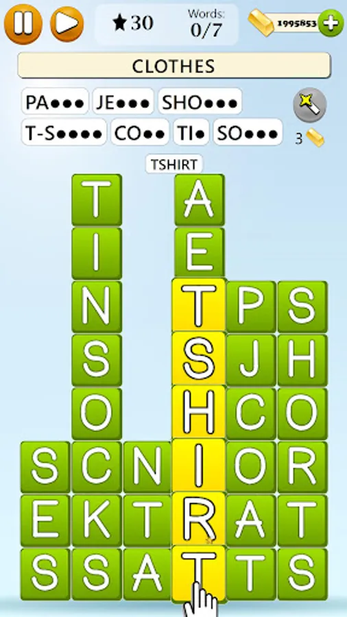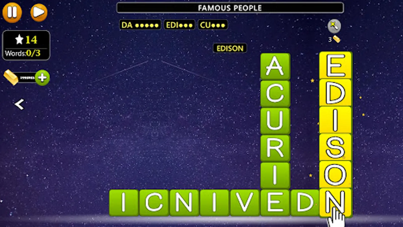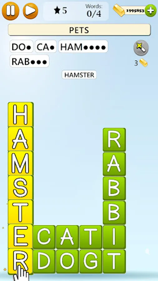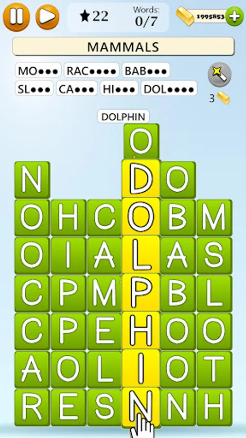 You find words and pop them with one swipe. Words are placed either vertically or horizontally. Finding words is easy when you use the hint and starting letters. When you pop all the letters you win the game. The game gets easier as you find more and more words.