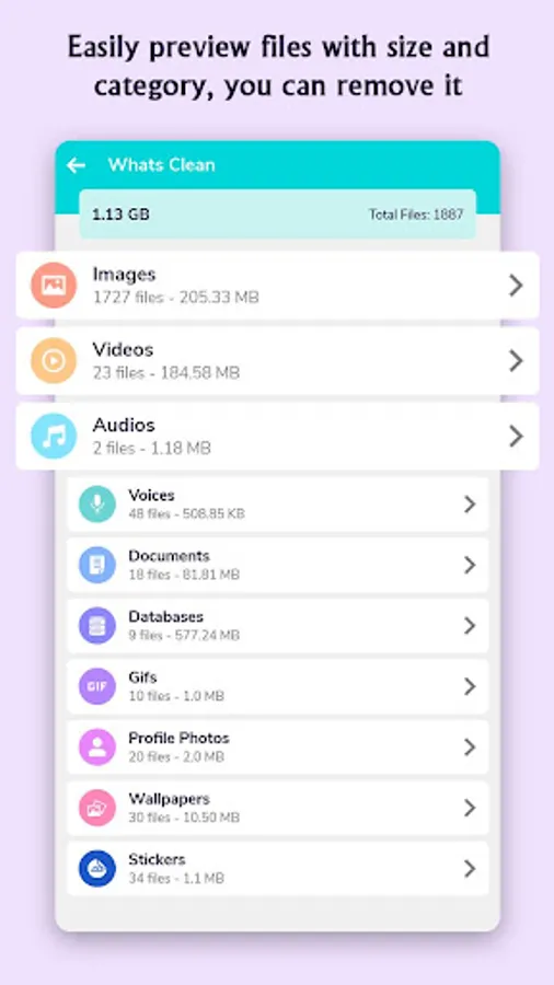 This single click lets you bulk delete images, gifs, audio files & videos to clean up storage space and boost performance of your device.