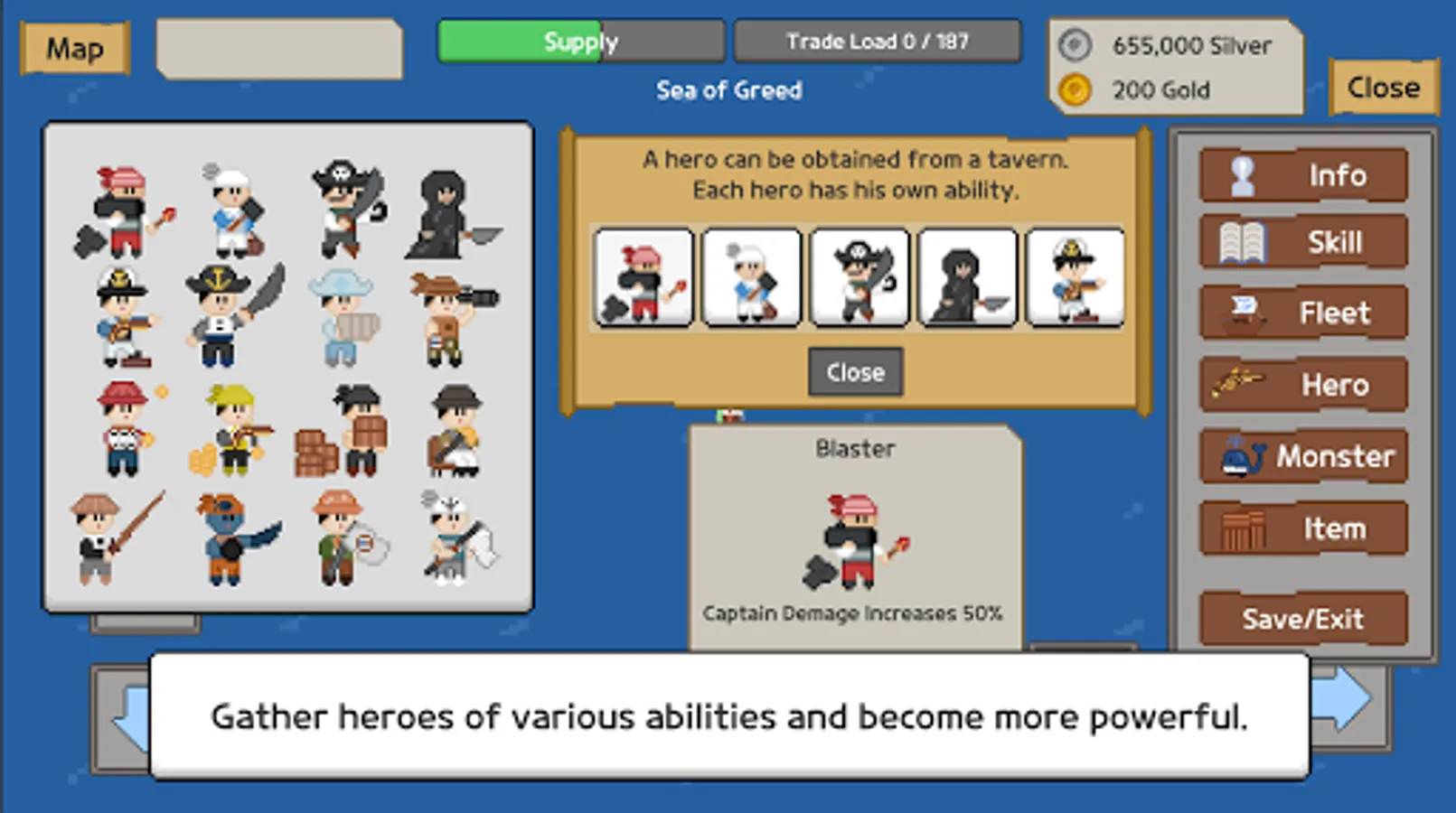 Heroes can be acquired at the tavern.