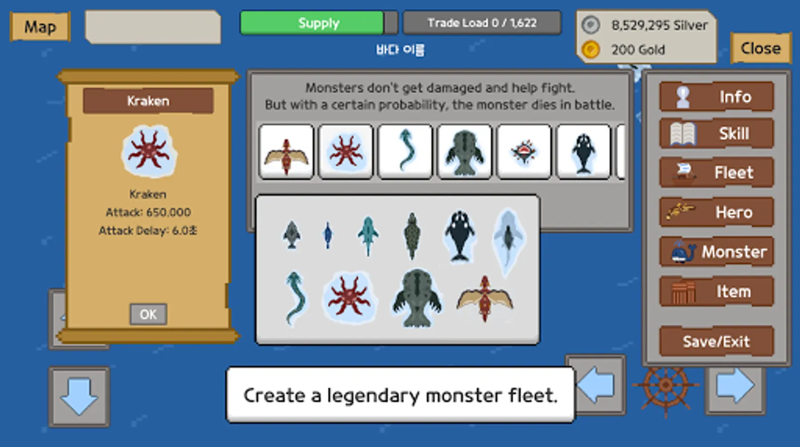 Only ships participate in monsters and battles, so we need to gather and fight strong ships.