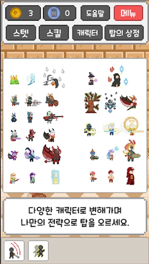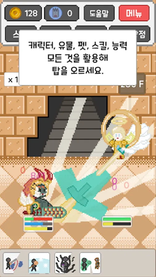 The play format is a roguelike RPG format, where you climb the tower to enhance your abilities, and strengthen your character abilities and artifacts with the essence of the tower obtained during the game to challenge higher levels.