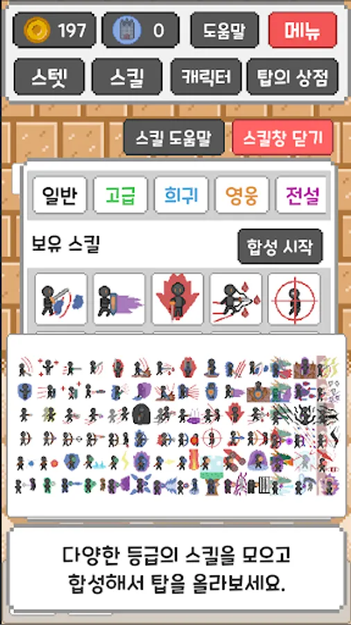 Skills can be acquired while climbing the tower, and unnecessary skills are synthesized