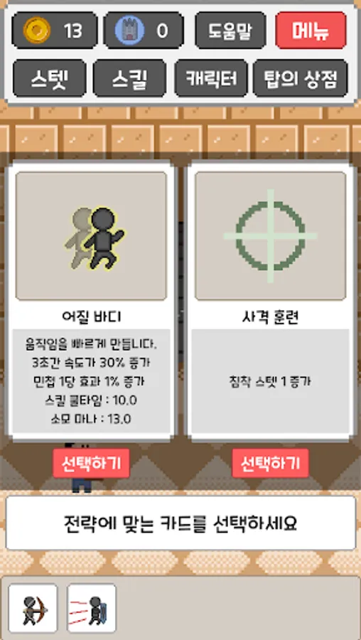 In the tower, you can choose a card with increased ability or skill acquisition every time you climb the third floor.