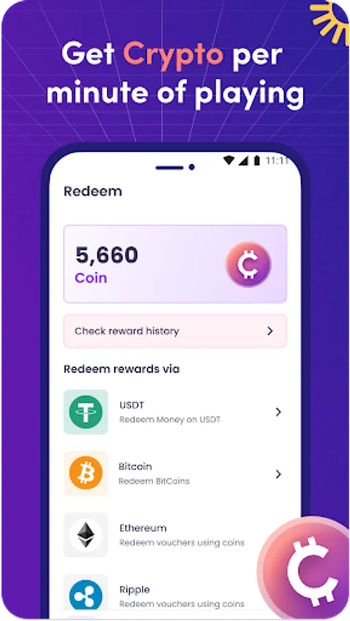One of the most unique features of our app is that it allows you to earn crypto of your choice. Whether you're a fan of Bitcoin, Ethereum, Ripple, USDT or BNB, our app has got you covered. You can redeem your coins in exchange of any of these crypto and cash them out to your digital wallet.