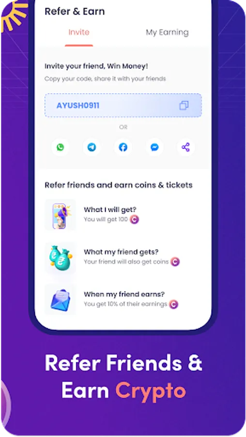 With our refer and earn feature, you can earn even more crypto by inviting your friends to join in on the fun.