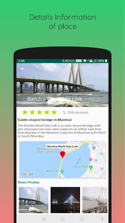 ✅ Get the details info about the place like Name, Description, Reviews, Beautiful Images, address etc.