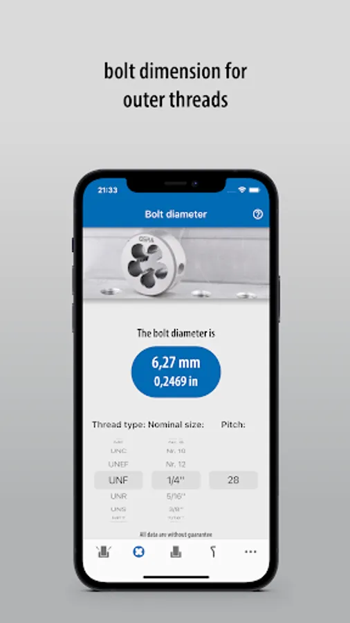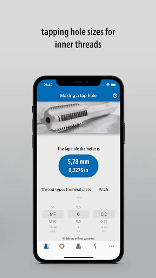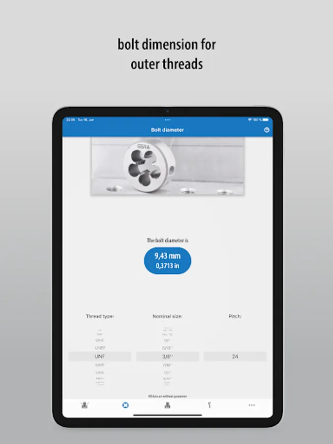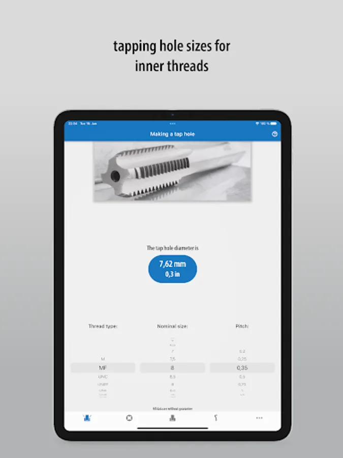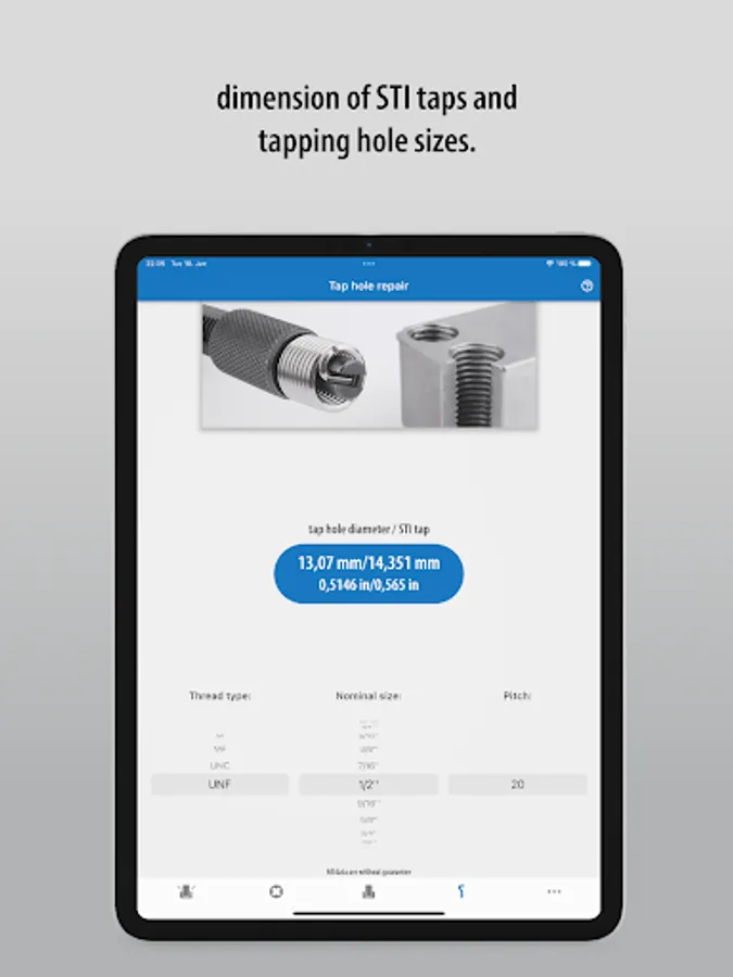 Simply select the desired thread type, nominal size, and pitch and you will get the matching diameter for your project. This saves precious time you would have spent tediously searching for internal and external thread dimensions in tables.