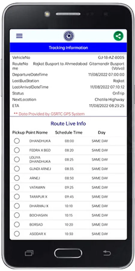 GSRTC application is designed for GSRTC customers, who frequently use Gujarat state transport for travelling.This application will help you to find out schedule of different buses and other information.This application provides great user interface for GSRTC customers.