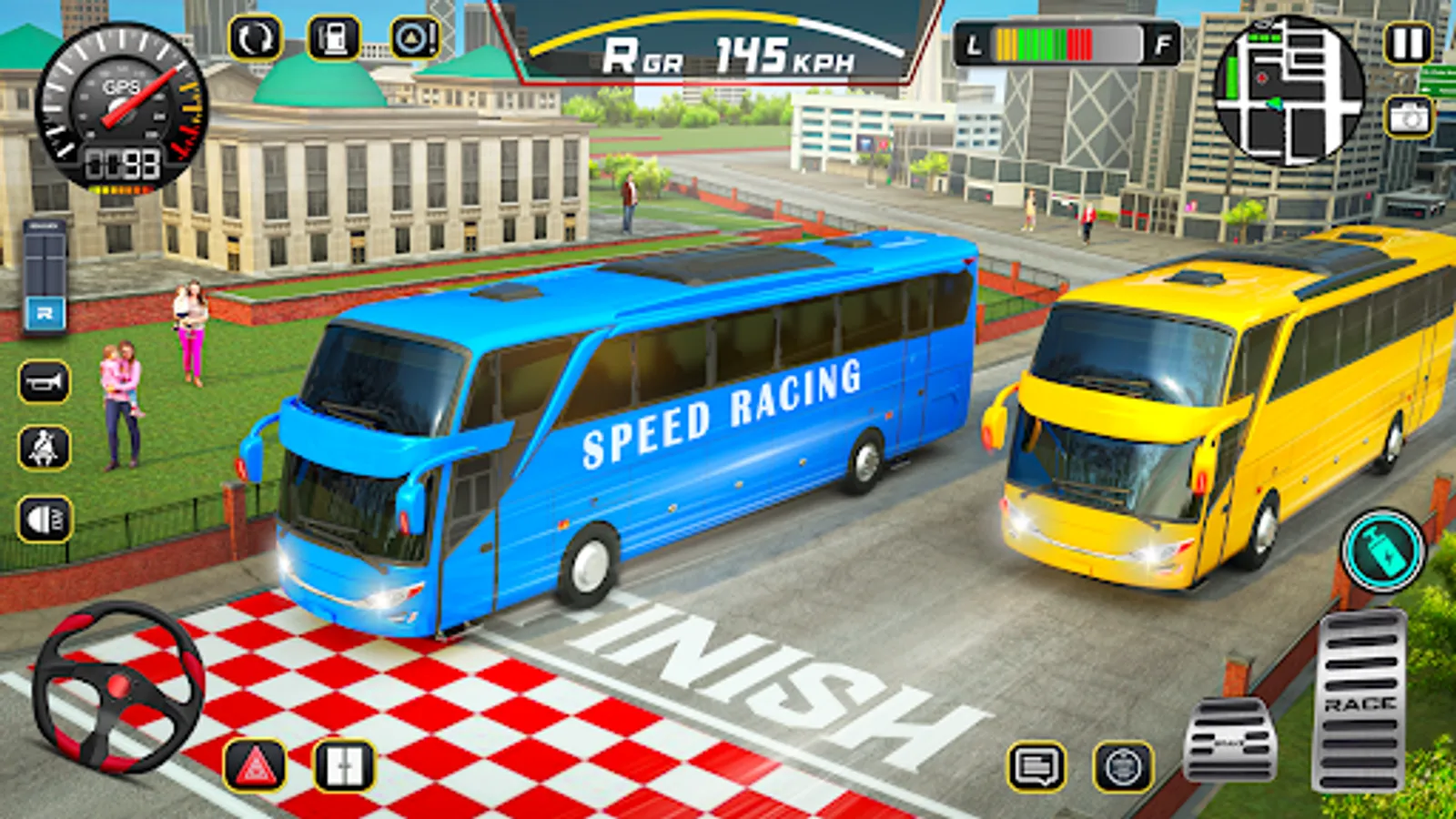 This modern bus driving simulator features detailed gameplay with many coach busses to chose from in live city environment with traffic jams and people walking and crossing the streets.