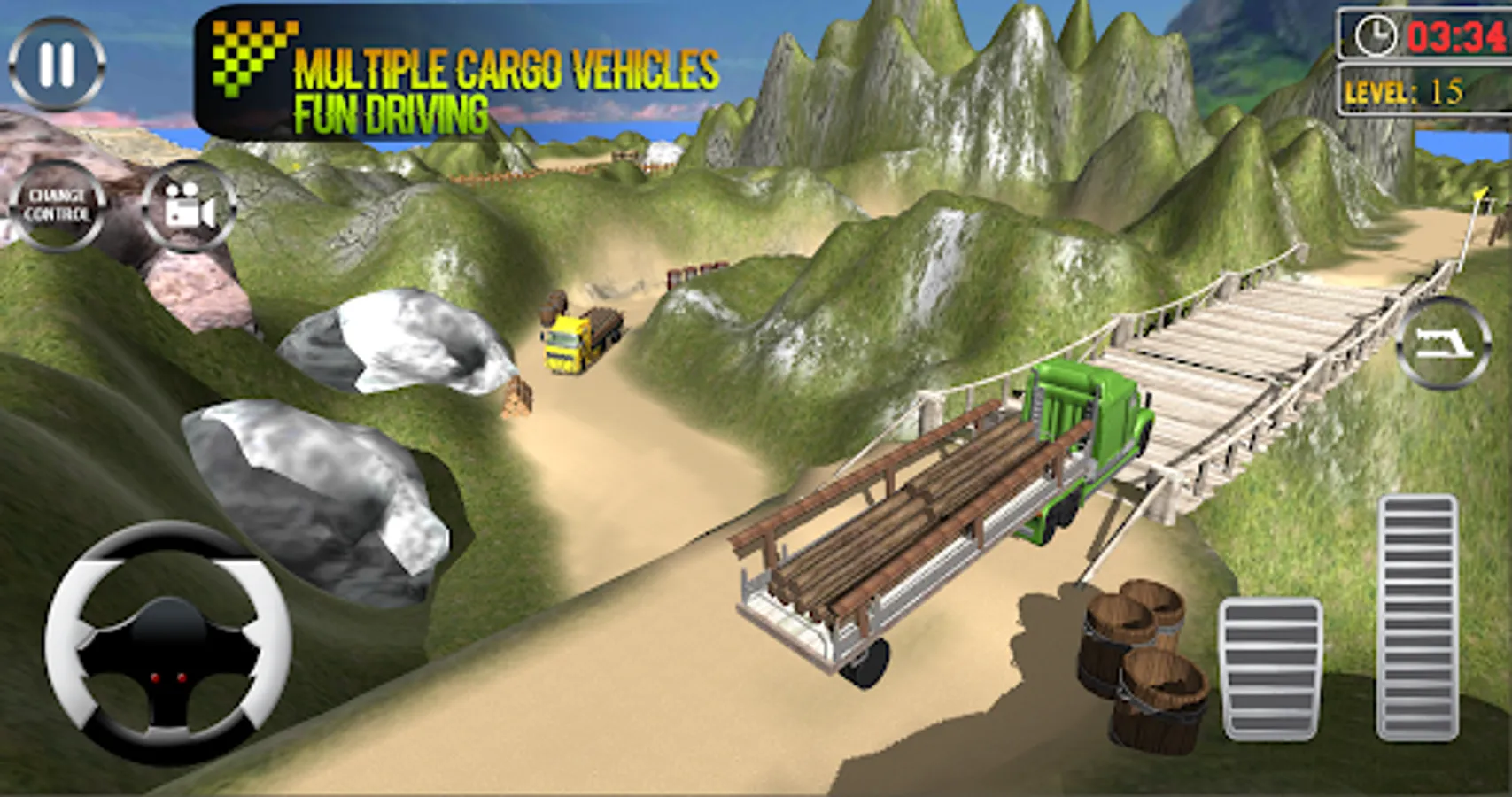 In Pak Mountain cargo truck cpec you need to drive the Pakistani pk indian cargo truck on mountains and dangerous roads and be very careful while driving the achi transport truck game. In the transport truck apps game there are different multiple transport and cargo raw material which need transportation such as barrels, wood, and logs etc. Get yourself ready for extreme offroad driving and offroad parking on giants jeeps fully loaded with a variety of cargo items. In the truck logistics 3d truck simulator game if you will bump into hurdle rocks or other cars and trucks then you may possibly drop the truck drive future cargo which leads to truck driver mission failure.