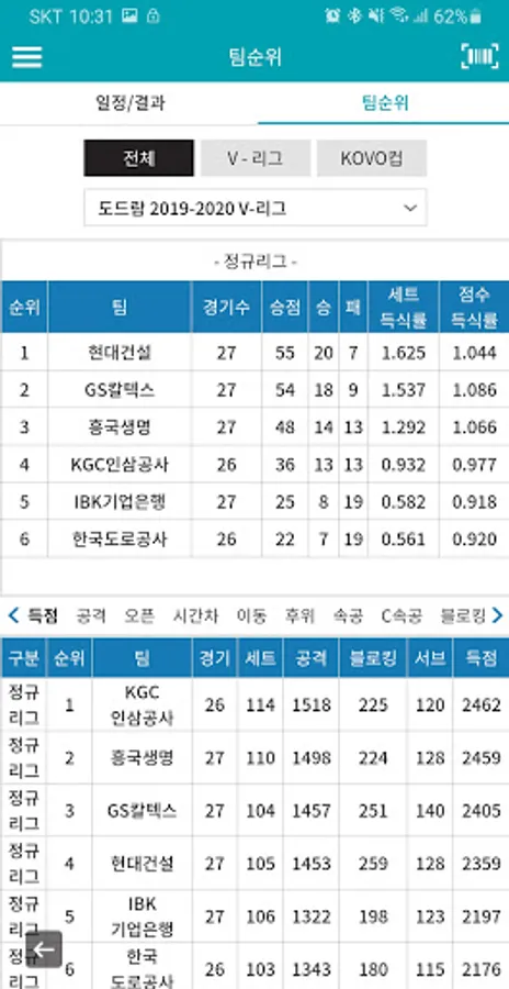 You can check the match schedule and results of the V-League / KOVO Cup.