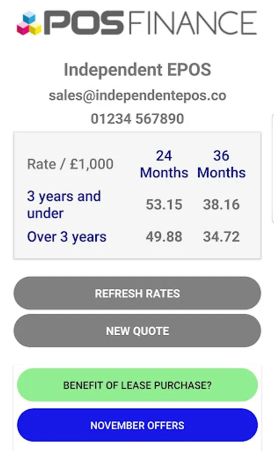 POS Finance dealers can use this app to calculate a potential customer's weekly and / or monthly finance payments for an equipment purchase.