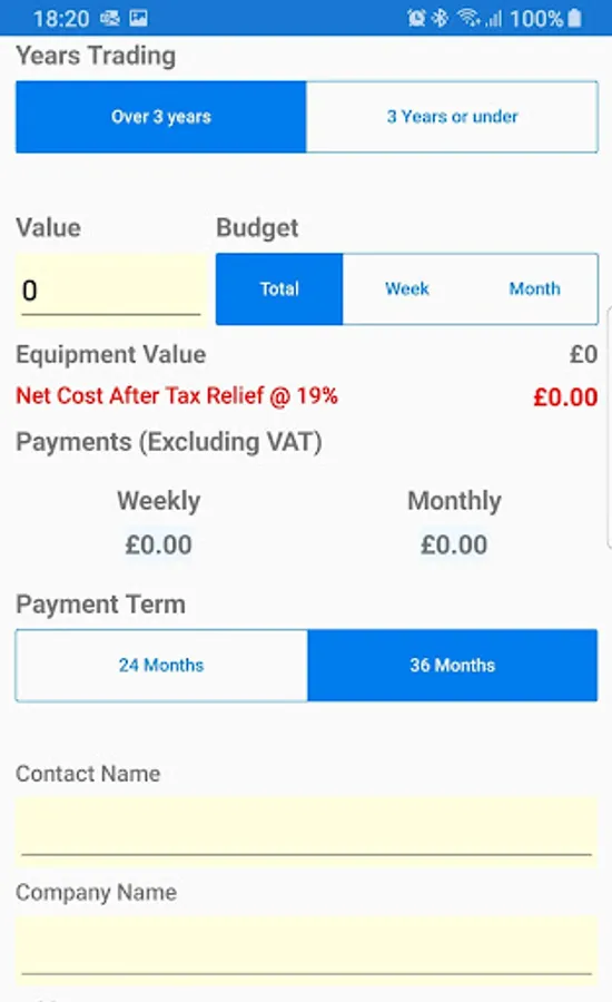 If a customer has a weekly or monthly budget, the app can calculate the capital amount available.