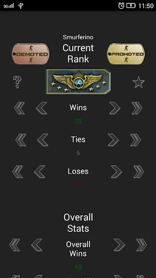 Ranked Stats CSGO helps you keep track of your ranked games in Counter Strike Global Offensive. It does not tell you when you are going to rank up. It just helps you keep track of your matches, and based on your history have a better understanding on how the ranking system works. It supports up to 5 different accounts.