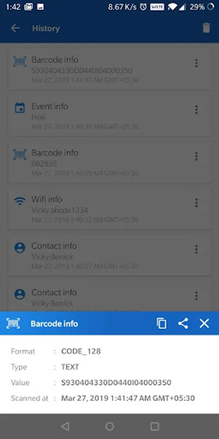 ► QScanner can scan and read all QR / barcode types including product, contact, calendar, text, url, ISBN, email, location, WiFi, driving license and many other formats