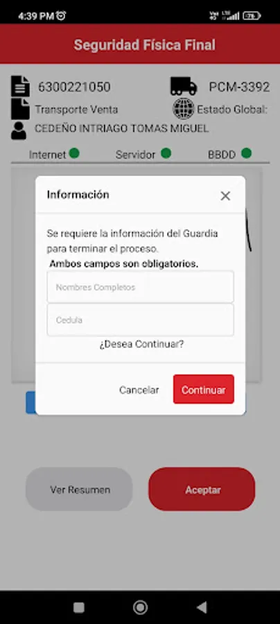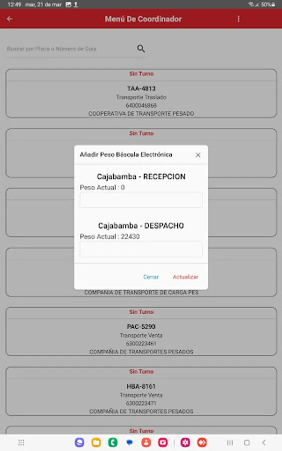 Centinela is the new software for the automation of weighing operations for truck scales and control of information from the transport inspection of the company Moderna Alimentos S.A. With an interface that is quick to understand and that favors, above all, obtaining the desired information with the greatest precision and speed possible, controlling the reception and dispatch processes. The Sentinel application allows the collection of weighing data from the controller (scale) to the mobile device, so that later these weighings are stored in a database that is located on a centralized server.