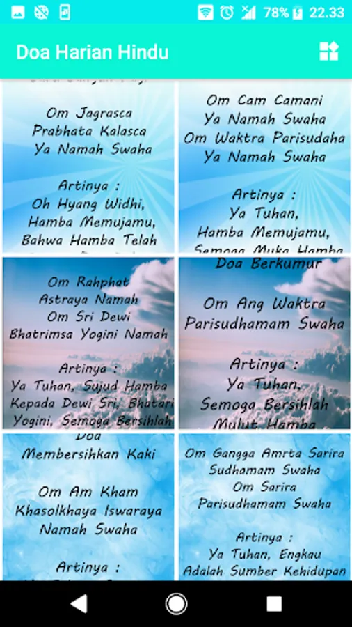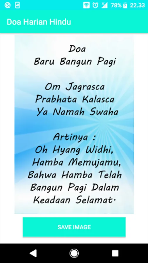 Daily Hindu Prayers Offline is an application that contains a collection of Hindu religious prayers from daily prayers and prayers, the application is easy to use and understand so that it doesn't make it difficult for users. Prayers are available in downloadable images.