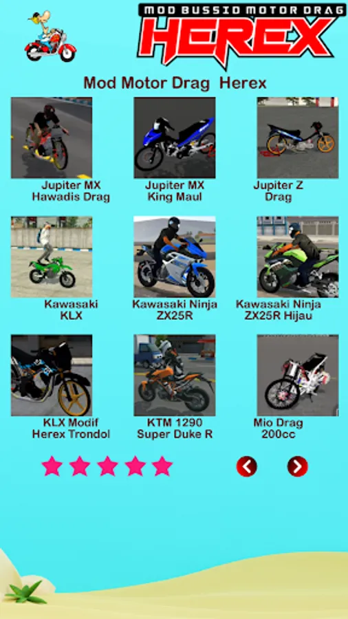 You can play lots of the newest bussid 2023 exhaust mber mods. You will have fun playing the cool drag motorbike herex simulator. There are many models of clutch drag motorbike simulators that you can play. There is also the coolest 2 stroke bussid motorbike mod. Then there is also the bussid flat drag motorbike mod which is really cool. You can also try the bussid motor drag contest mod with many variants that you can play. We also provide present thailand mod drag bike. Very complete mod that you will get in this application. Download and enjoy all the cool mods from this app.