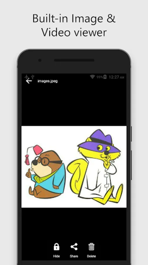 In addition to saving and hiding, you can make a backup so you don't have the problem of losing your images and documents. Saves to both your Google drive account and Dropbox.