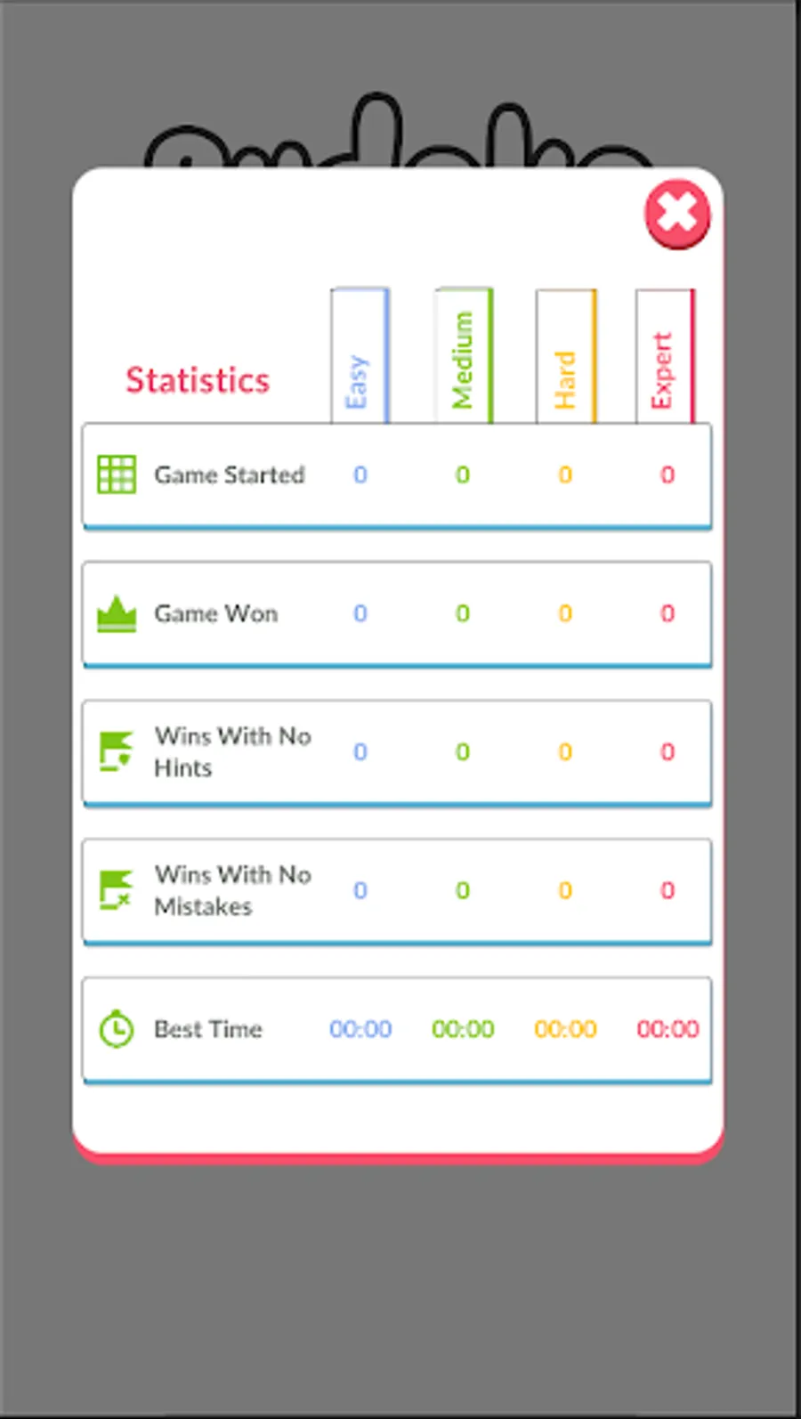 - Personal Sudoku stats for each difficulty (easy, medium, hard and expert, including daily Sudoku challenges)