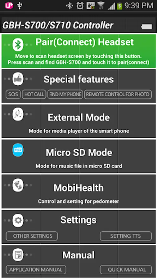 - It enables to listen music if there's music file in micro SD card of GBH-S700/S710.