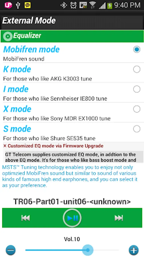 - Controlling for volume "&" EQ of the headset and media player of the phone during playing music.