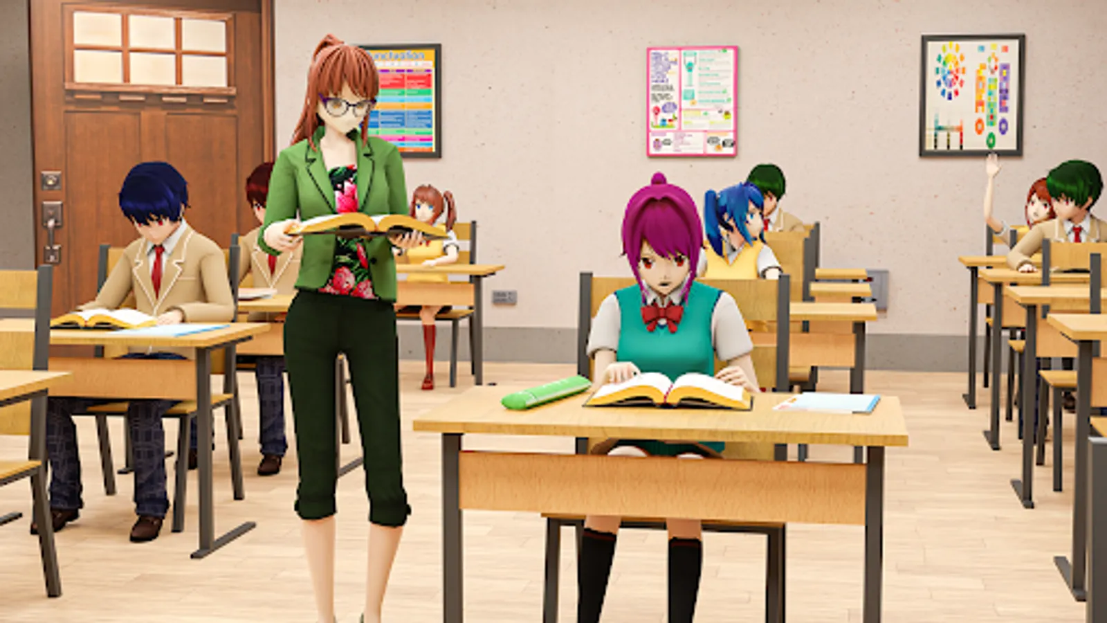 in school teacher simulator 3d you have to maintain the environment of your virtual classroom. Let's have fun your school life days as a school teacher, this time in virtual high school games. Now it's up to you how you will control your student as a teacher in the virtual classroom. You can improve your virtual high school game skills with anime school games for girls simulator. You may have played a lot of virtual school teacher games as well as teacher simulator games in the past, but we assure you that by playing afterward anime virtual schoolteacher, you will forget all the schoolteacher games that are still on your mind.