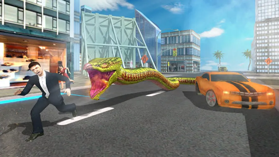 -Realistic anaconda snake animation and beautiful 3D town environment.