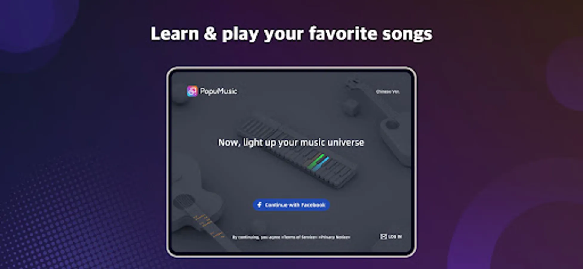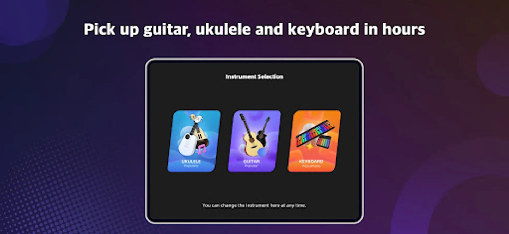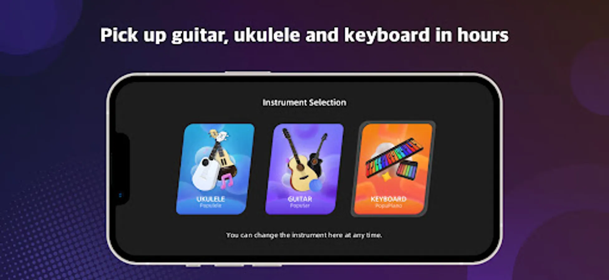 You can also switch instruments between Poputar and Populele, learn and play more than two music instruments with one App. We will have PopuPiano in the future.