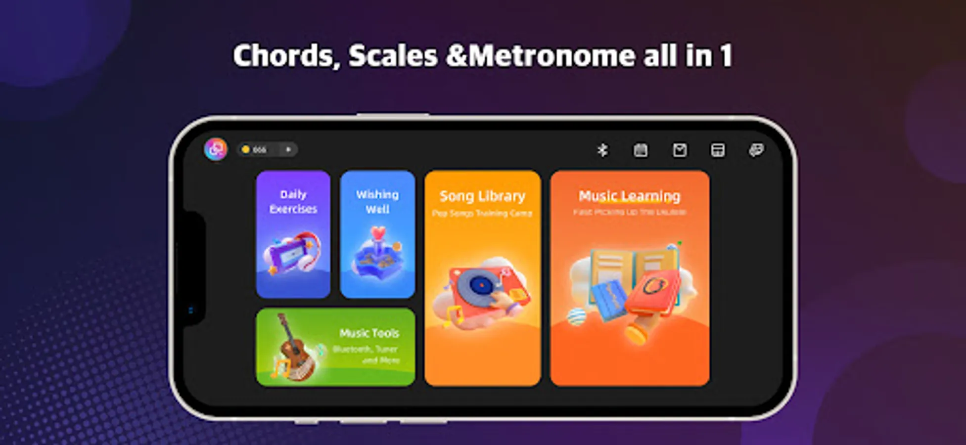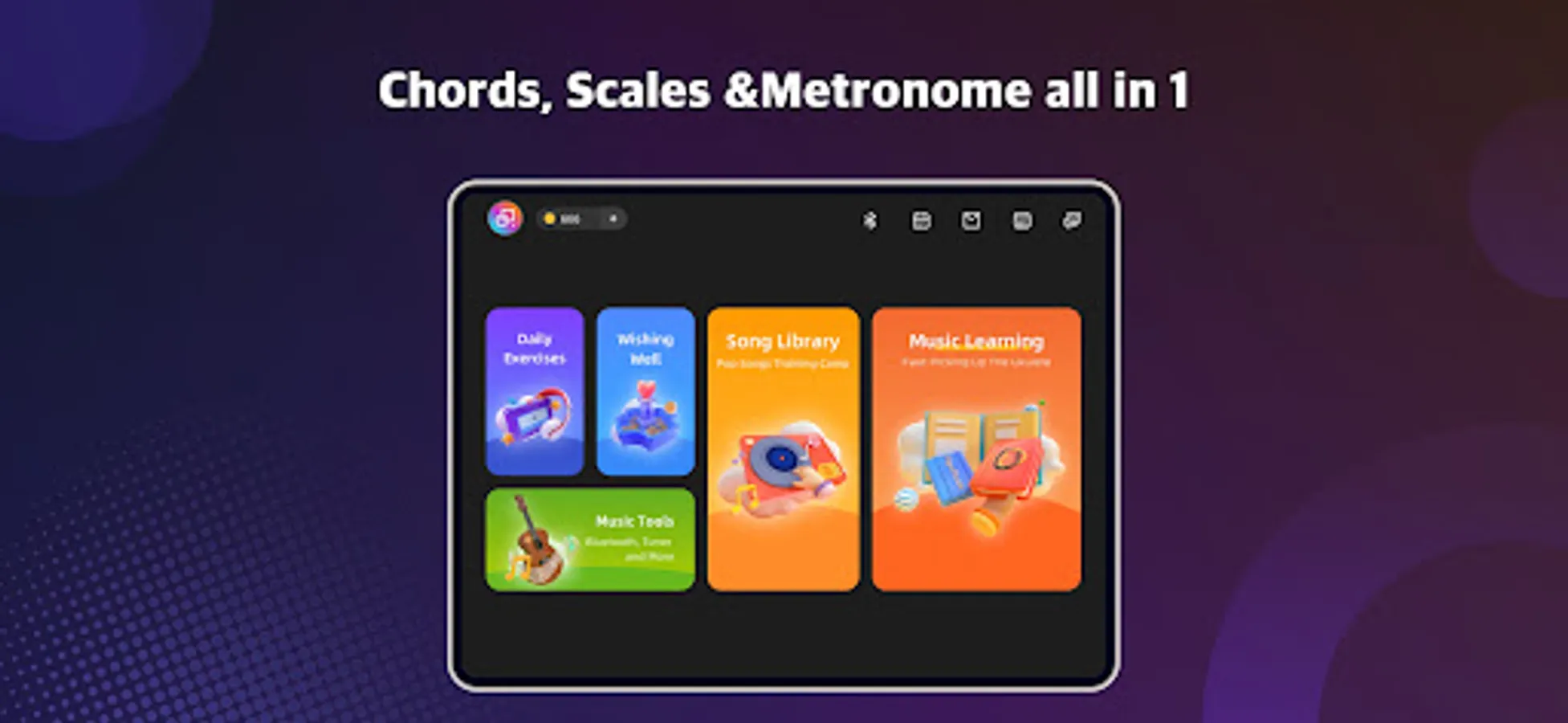 With the learning by playing settings, you will jam with friends or perform on stage very soon.