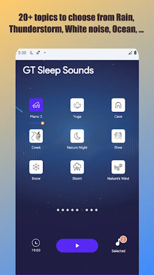 - 20+ topics to choose from Rain, Thunderstorm, White noise, Ocean, Nature, Music, ...