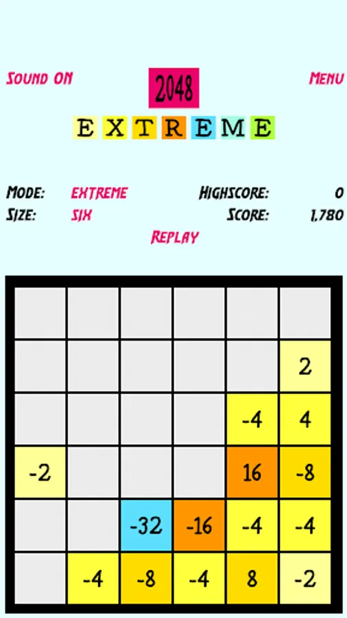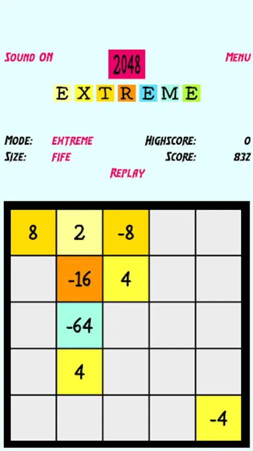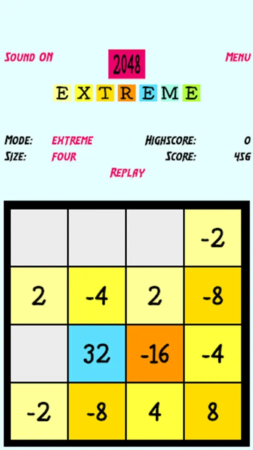 *) in extreme mode when 2 tiles of same value but one positive and one negative touch the tile will be removed