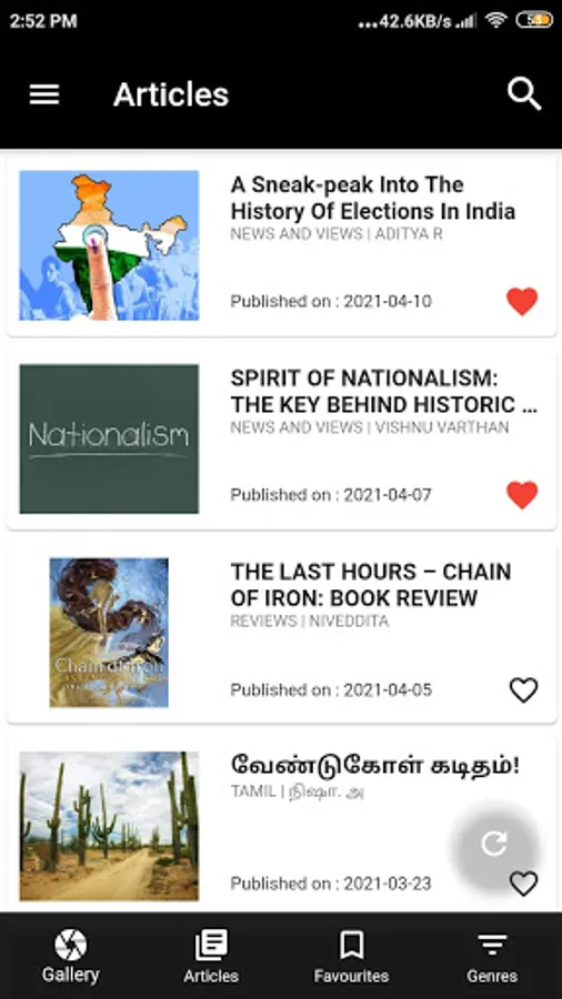 All articles can be viewed from the app.Filters are also applicable .Articles based on genres is also listed.Search Feature is also enabled for Articles.