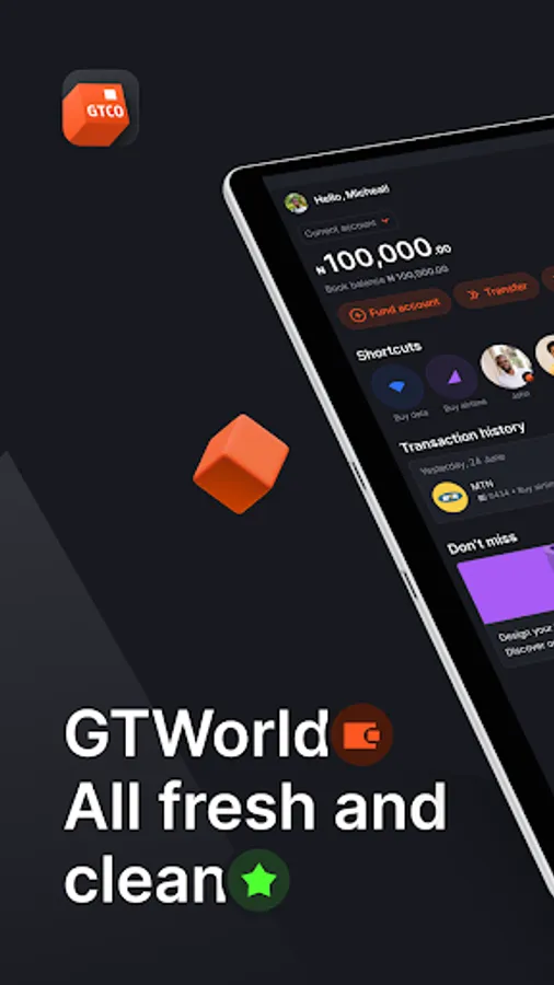 Introducing the new GTWorld application with a fresh new look and cool features that will allow you open an account, transfer money, pay bills, buy airtime or data, and more – all in one place!