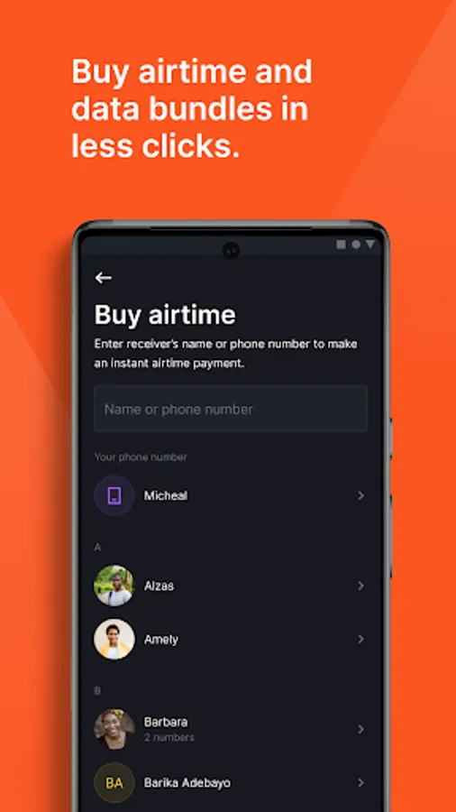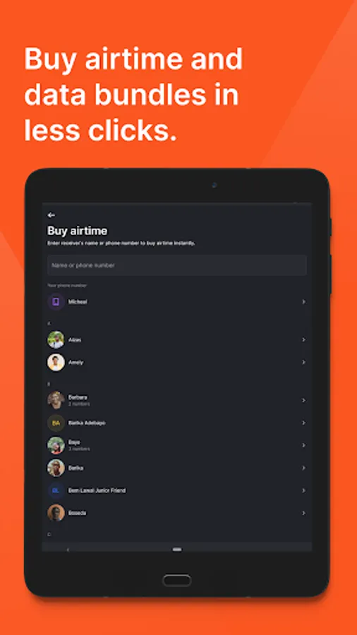 - Buy airtime and data for self, phone book contacts and others