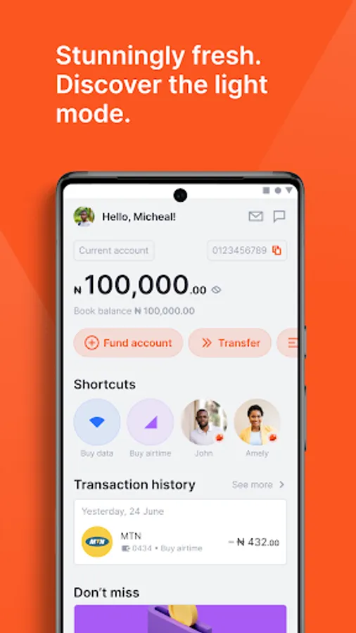 - 3-tap quick transactions for transfers, airtime and data purchases from springboard